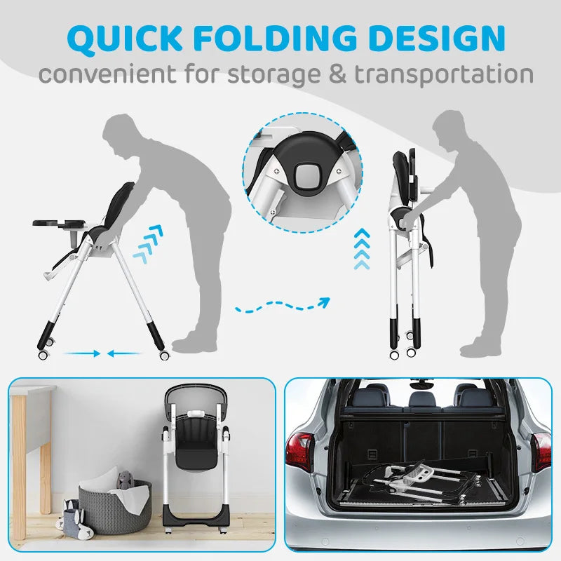 The Sejoy Foldable High Chair grows with your child, delivering a convenient, portable, space-saving dining solution for every stage of development and family travel.